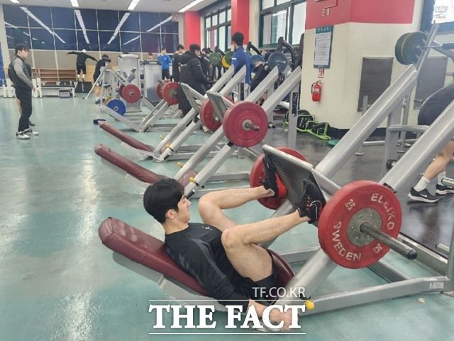 웨이트트레이닝에 집중하고 있는 스포츠토토빙상단의 박장혁 선수./스포츠토토코리아