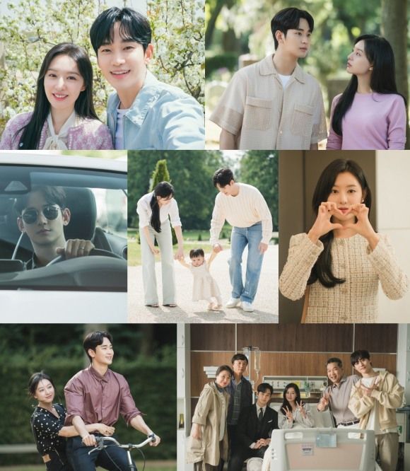 또한 아기의 양손을 꼭 붙들고 발을 맞춰 걷는 백홍 가족의 단란한 시간은 마음을 절로 따뜻하게 만든다. 선글라스를 쓴 김수현의 카리스마와 손하트를 날리는 김지원의 러블리함도 돋보인다.