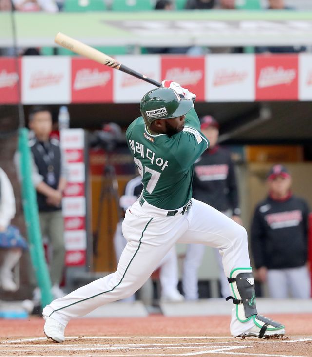 에레디아의 타율은 1일 기준 0.393(117타수 46안타)로 리그 1위다. 오금(무릎이 구부러지는 부분 뒤쪽) 통증 문제로 경기 출전이 들쭉날쭉했던 3월 월간 타율은 0.214로 낮았다. 하지만 컨디션을 회복한 4월 펄펄 날았다. 월간 타율이 0.408(98타수 40안타)에 이른다. 야구통계전문업체 스포츠투아이에 따르면, 에레디아는 '무결점 타자'에 가깝다. 직구(포심 패스트볼)와 컷 패스트볼, 포크볼, 투심 패스트볼 타율이 모두 4할 이상이다. 구종과 코스를 가리지 않고 다 때려낸다. 무리하게 당겨치지 않고 능수능란하게 밀어치기도 한다.