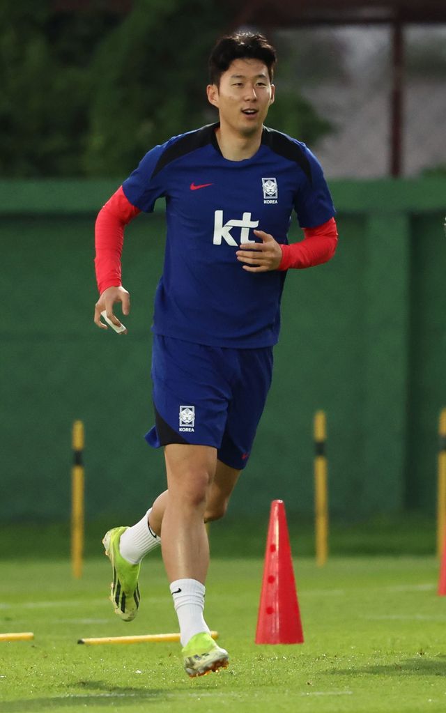 지난 3월 24일 태국 방콕 윈드밀 풋볼클럽에서 태국과 2026 북중미 월드컵 아시아 지역 2차 예선 C조 4차전 경기를 앞둔 한국 축구대표팀의 주장 손흥민이 훈련하고 있다. / 연합뉴스