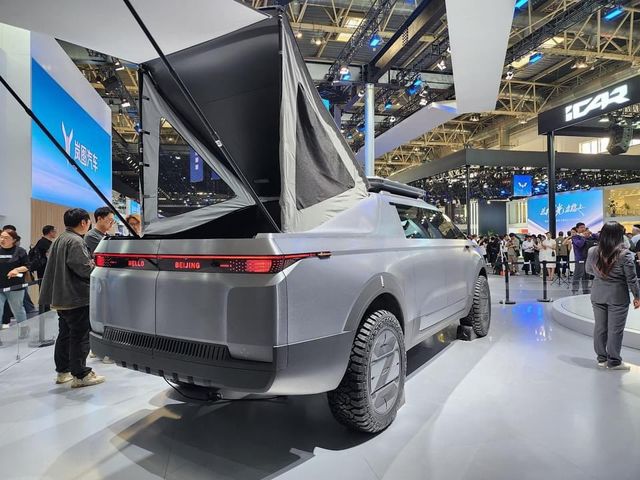 전면에는 사이버트럭과 유사한 LED 스트립이 있지만, 동펑 콘셉트는 더 높은 위치에 있다. 중국의 픽업트럭은 롤스로이스에서 영감을 받은 듯한 코치 도어를 갖췄다.