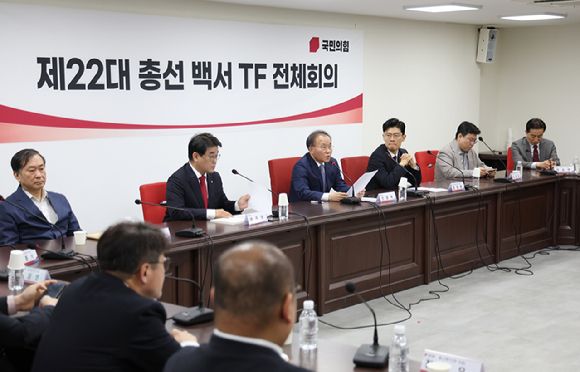 윤재옥 원내대표는 이날 오전 서울 여의도 중앙당사에서 열린 22대 총선 백서 TF 1차 전체회의에서 "국민의힘은 서울, 수도권, 충청권에서 국민 신뢰를 받지 못해 22대 국회에서도 여소야대 상황에 직면하게 됐다"며 "당은 선거 이후 당을 재정비해 국민 목소리를 귀담아 듣고. 국민 기준에 맞도록 바꾸겠다고 약속했다. 오늘 시작하는 총선 백서 TF는 국민 약속을 지키는 실천의 첫 걸음"이라고 했다.