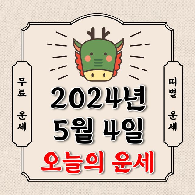 오늘의 운세 2024년 5월 4일 토요일 (음력 3월 26일 / 띠별 운세 / 생년월일 운세)에 대해 알아 보겠습니다.