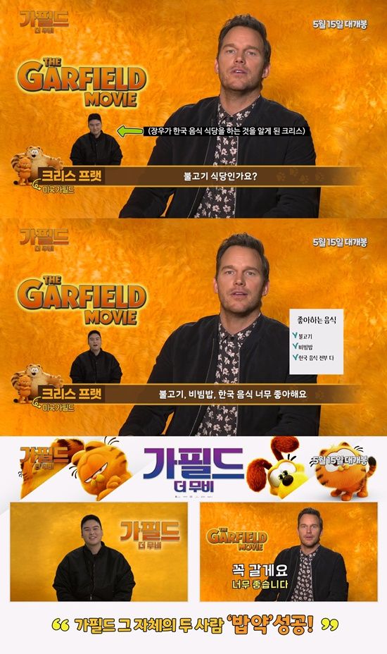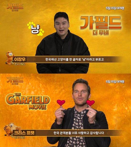 '가필드 더 무비'의 한국 가필드 목소리를 연기한 이장우와 미국 가필드 목소리를 연기한 크리스 프랫의 특별한 만남이 성사됐다.