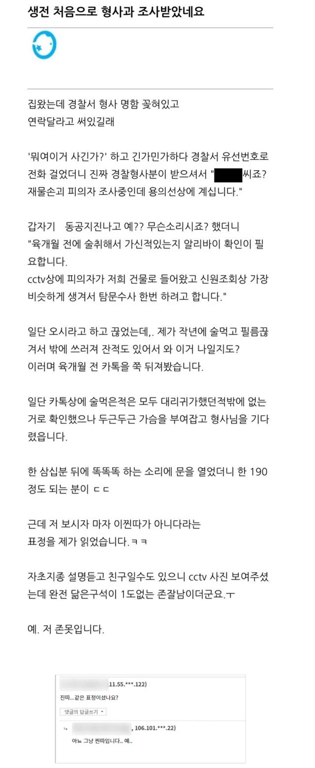 생전 처음으로 형사과 조사 받았다는 남자
