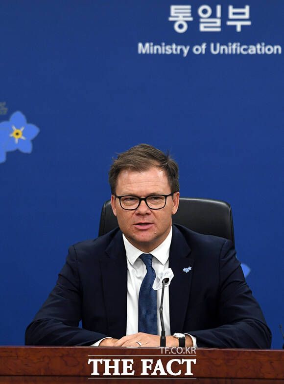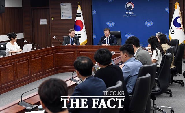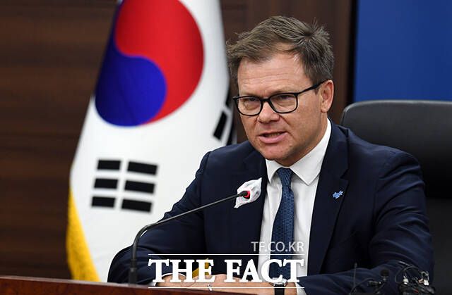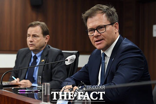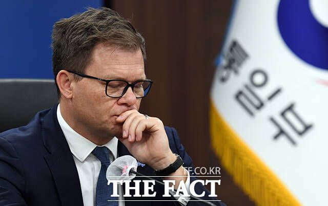 [더팩트ㅣ임영무 기자] 카스텐 슈나이더 독일 연방총리실 정무차관(동독틈임관 겸직)이 3일 오전 서울 종로구 정부서울청사에서 기자단과 인터뷰를 갖고 있다.