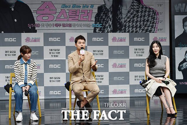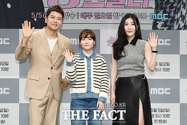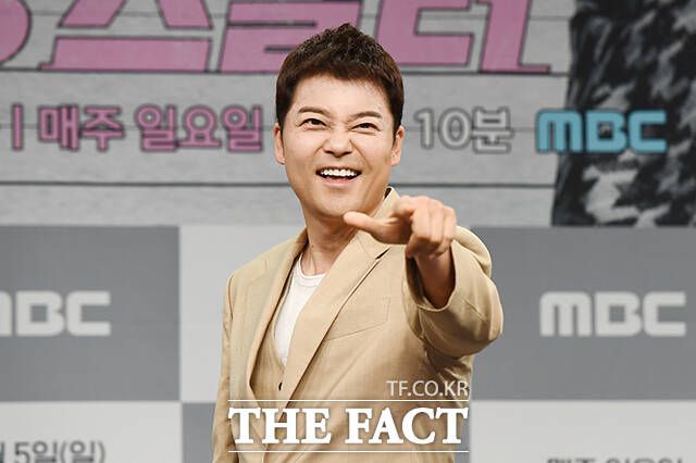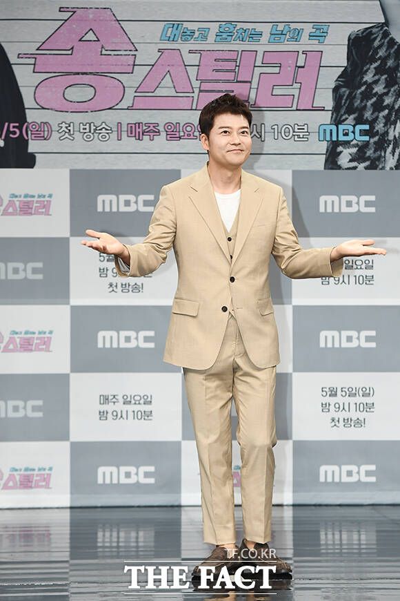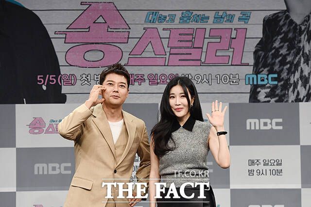 [더팩트ㅣ장윤석 기자] 방송인 전현무(왼쪽)와 가수 이해리가 3일 오전 서울 마포구 상암동 MBC 골든마우스홀에서 열린 새 예능 '송스틸러' 제작발표회에 참석해 포즈를 취하고 있다.