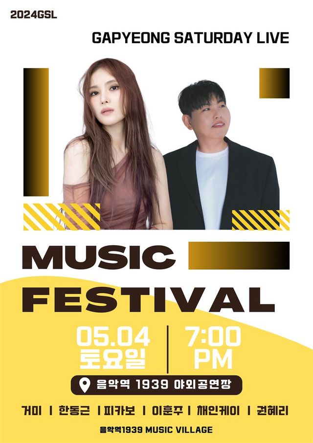 군 관계자는 “가평군은 저녁에 시작되는 뮤직페스티벌에 앞서 음악역1939에서 피크닉콘서트와 버스킹 공연을 계획하고 있다”며 “이를 통해 하루종일 음악이 흐르는 콘텐츠를 마련해 지역주민들에게 바쁜 일상속에서 음악으로 힐링할 수 있는 시간을 제공할 계획”이라고 말했다.
