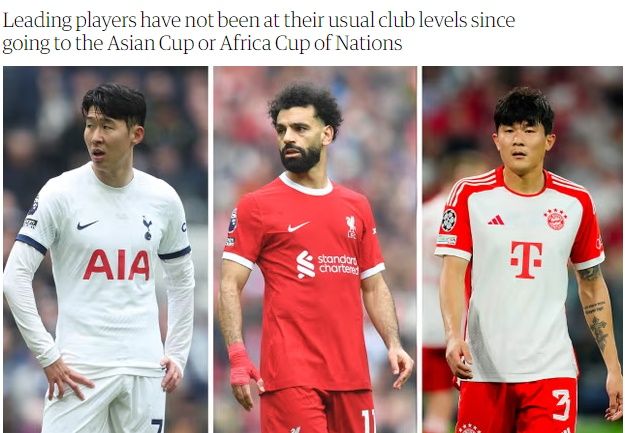 매체가 지목한 손흥민과 김민재 그리고 모하메드 살라(리버풀)의 공통점 중 하나는 2023-24시즌 도중 대륙별 컵대회를 치르기 위해 잠시 팀을 떠났다는 점이다.