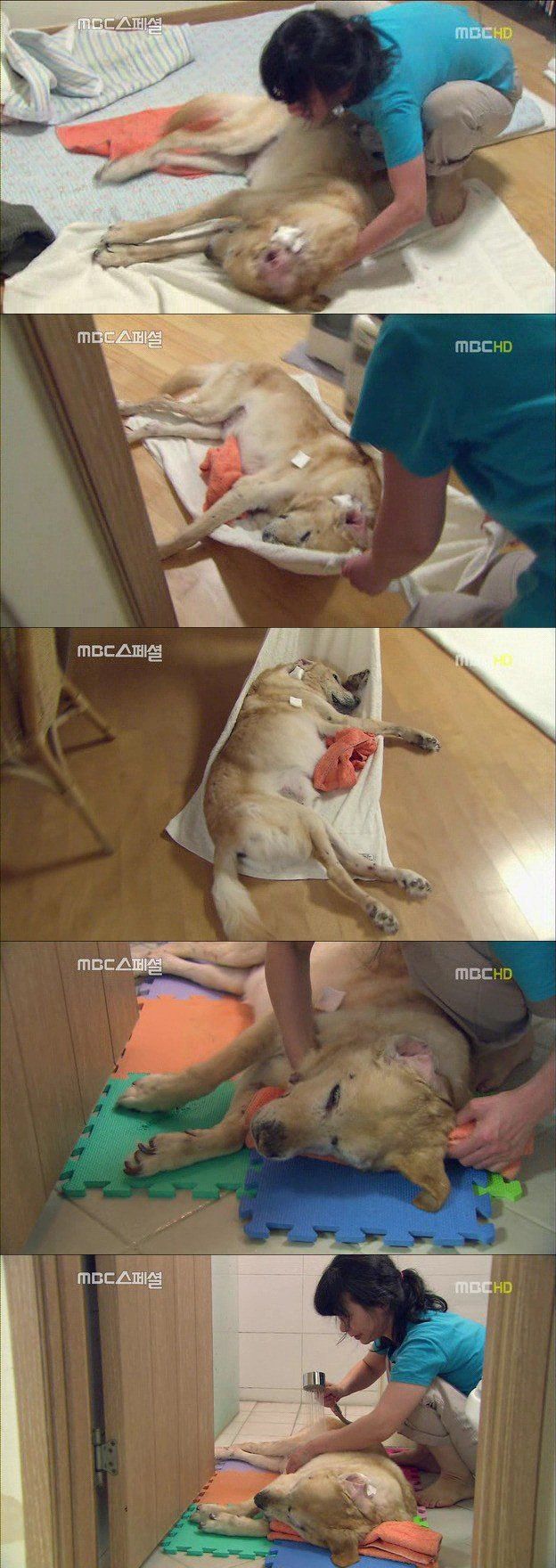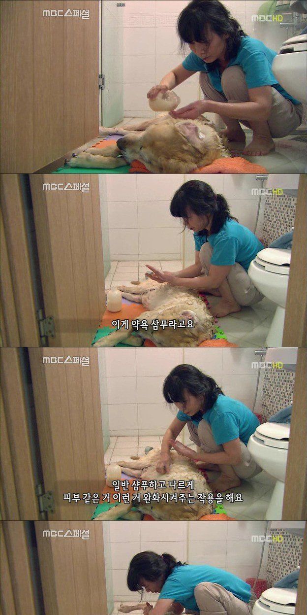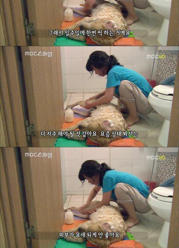 1주일에 한 번씩 꼬박 대부의 목욕을 시키는 인순 씨