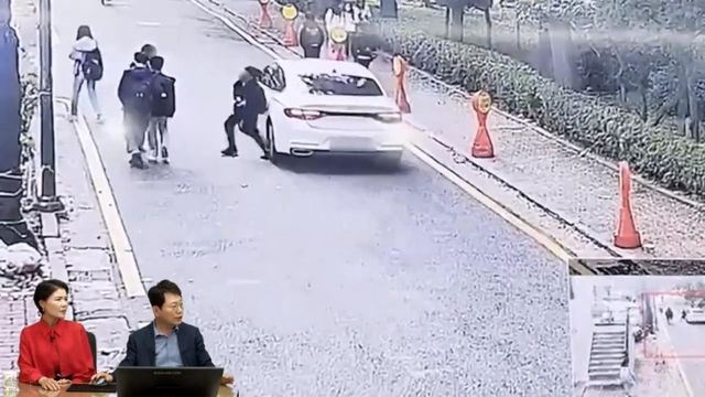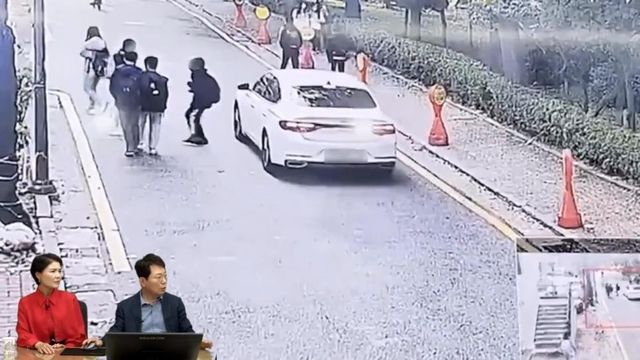 여학생이 발차기 함 -> 남학생이 그거 피하려다 오던 차에 발목 밟혀버림