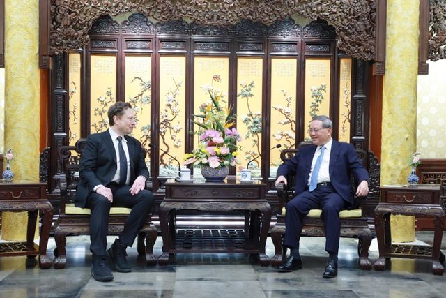 4월 28일 전세기를 타고 베이징에 방문해 리창 총리를 만난 일론 머스크 테슬라 CEO. 신화통신 뉴시스