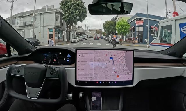 FSD 버전 12를 이용해 운전자 개입 없이 도심을 주행하는 모습. 유튜브 화면 캡처