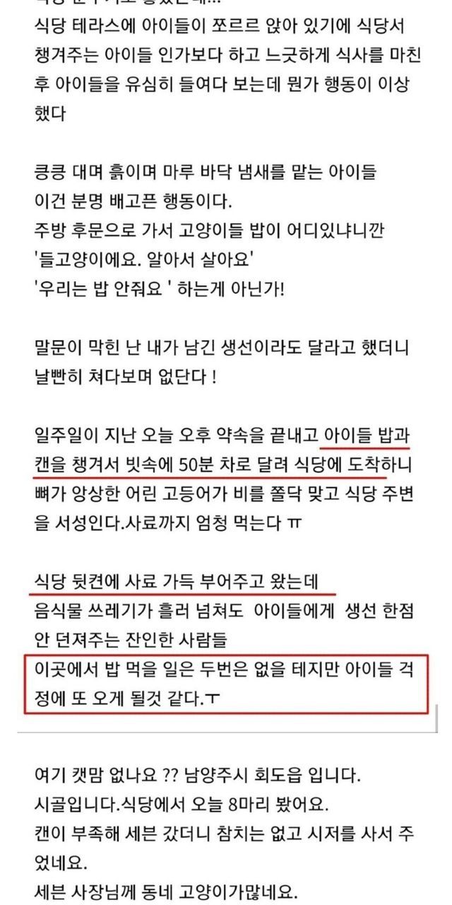 식당서 고양이 밥안준다고 빡친 캣맘..