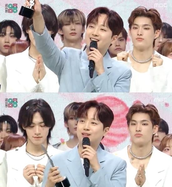 이찬원은 4일 MBC '쇼! 음악중심'에서 미니 2집 'bright;燦'(브라이트;찬)의 타이틀곡 '하늘 여행'으로 1위를 차지했다.