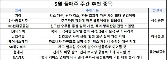 유안타증권은 SK하이닉스, 현대차, NAVER를 꼽았다.