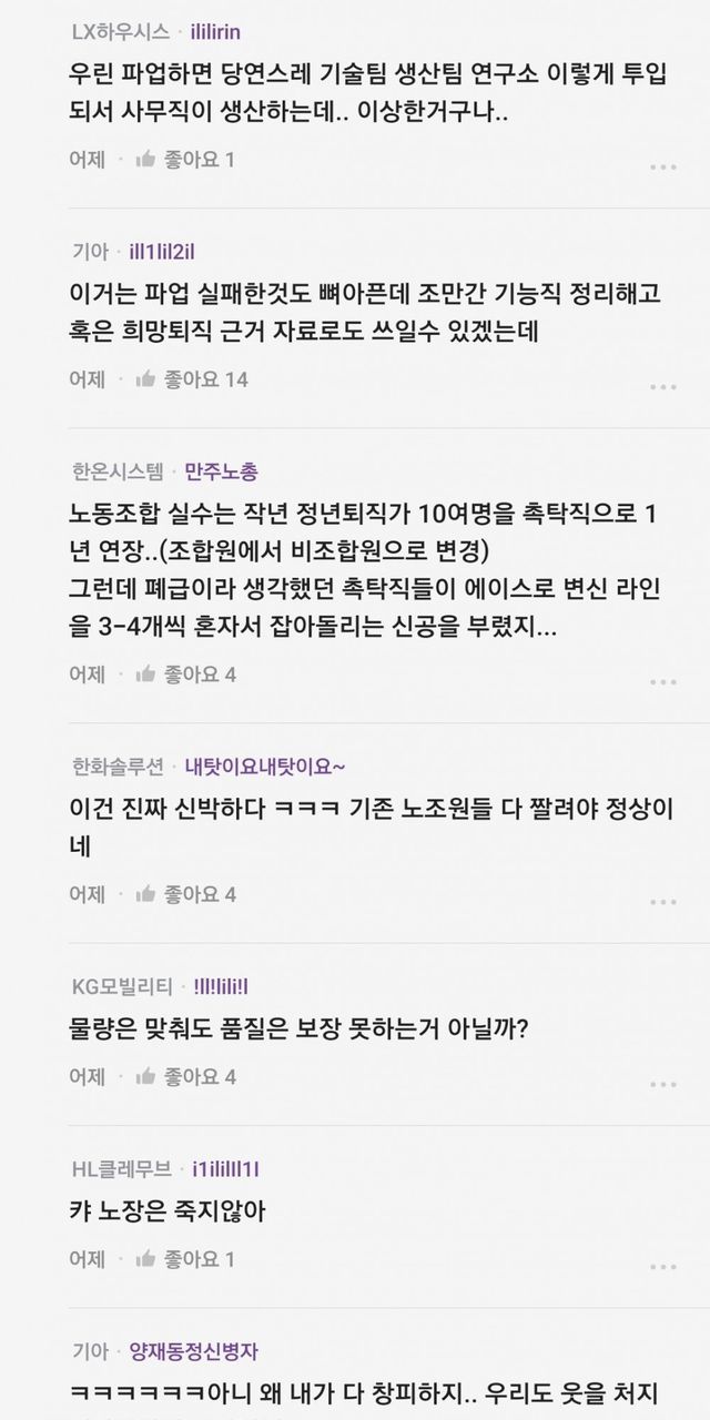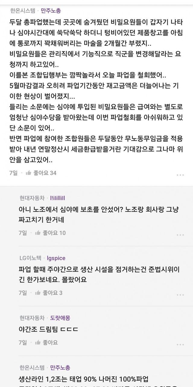 사측 인원이 야간생산만 했는데 평소 주야간 생산량 압도 ㅋㅋ