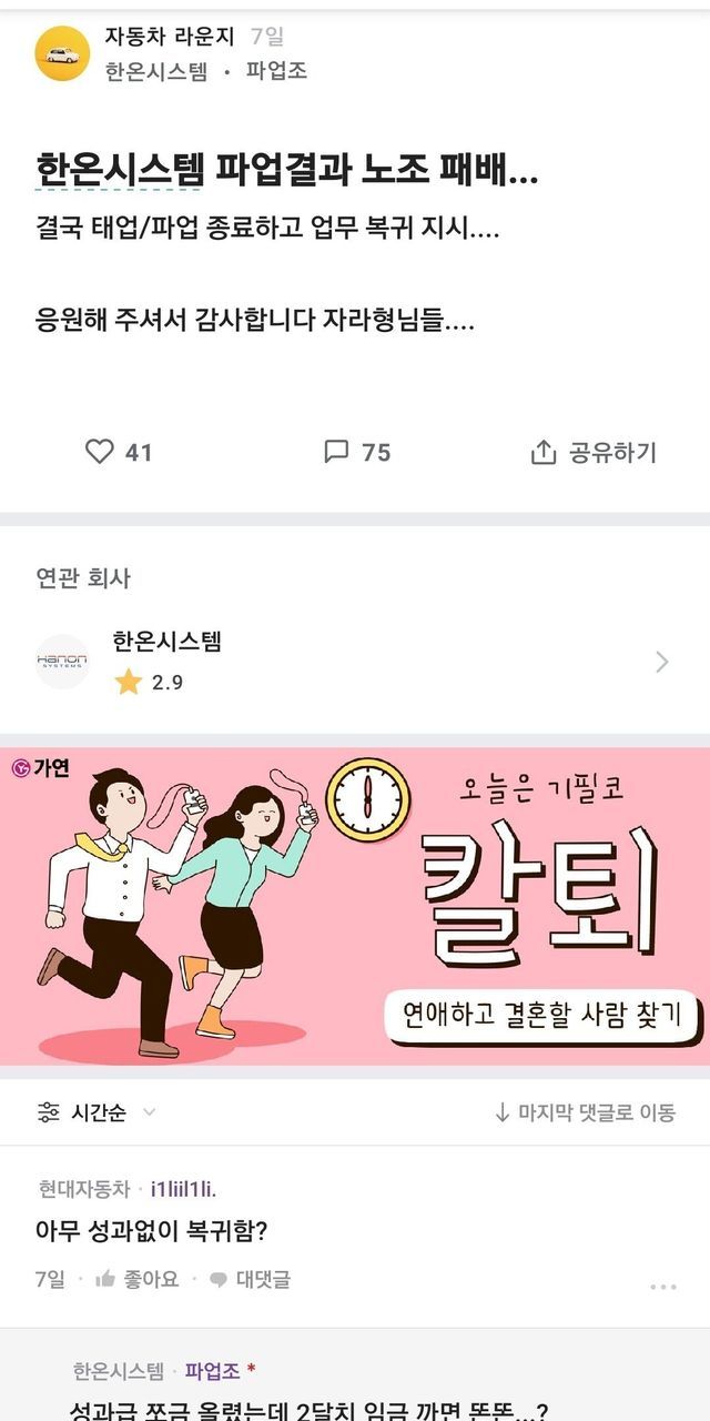 노조측에서 힘을 잃어버리고 파업 철회. 앞으로 ㅈ댐