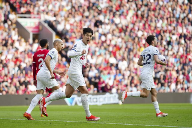손흥민은 5일(현지시간) 영국 리버풀의 안필드에서 열린 2023~24 EPL 36라운드 리버풀과 원정경기에서 1-4로 뒤진 후반 32분 만회골을 터뜨렸다. 골대 정면에서 히샤를리송의 패스를 받은 뒤 침착하게 골로 마무리했다.
