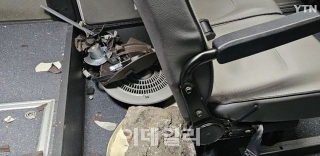 지난 6일 낮 12시 50분께 경북 울릉군 북면 일주도로 삼선암 근처에서 지름 50㎝ 크기의 낙석이 떨어져 관광버스 천장을 관통했다.