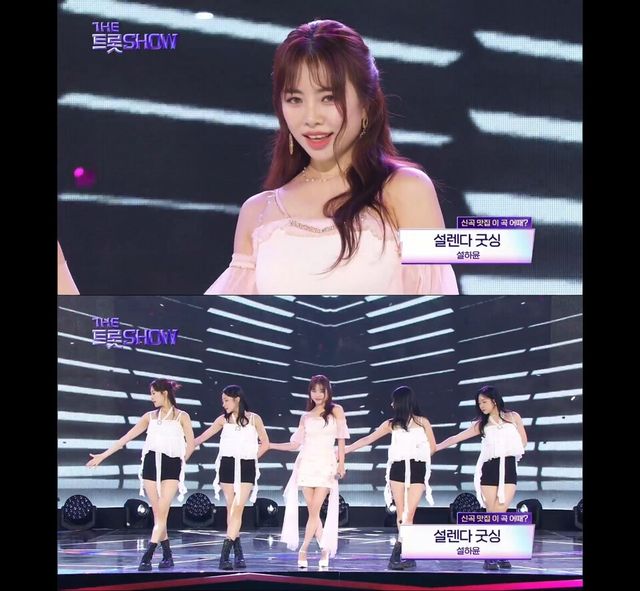 설하윤은 지난 6일 SBS M '더트롯쇼'에 출연해 신곡 '설렌다 굿싱' 무대를 공개했다.