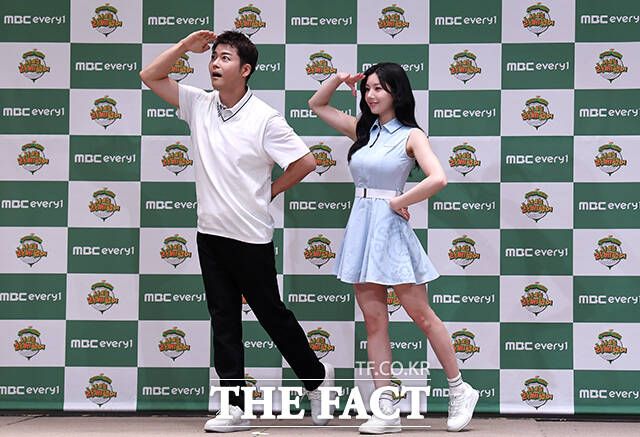 [더팩트ㅣ남윤호 기자] 방송인 김국진, 골퍼 문정현, 권은비, 전현무(왼쪽부터)가 7일 오전 서울 중구 앰배서더 서울 풀만 호텔에서 열린 '나 오늘 라베했어' 제작발표회에 참석해 포즈를 취하고 있다.