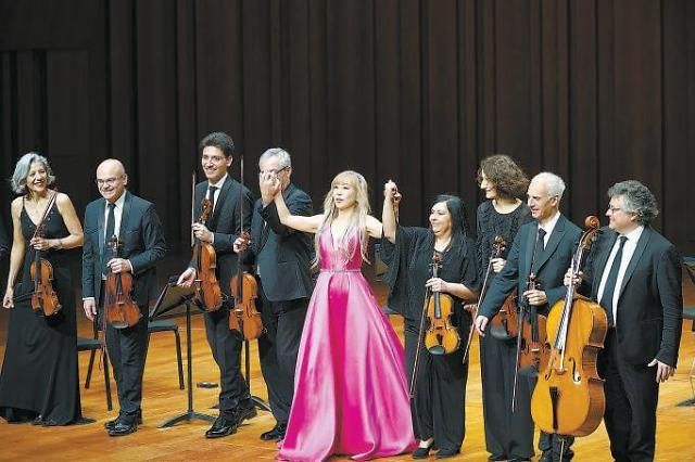 3日,在位于北京的国家大剧院,曹秀美携意大利音乐家合奏团向观众致谢。【图片提供 新华社】