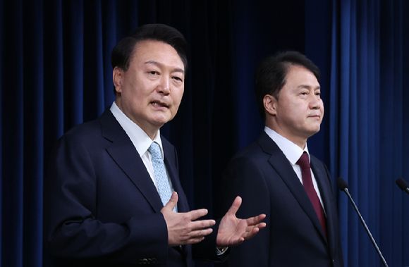 윤 대통령은 이날 오전 김 전 차관과 함께 용산 대통령실 브리핑룸을 찾아 민정수석실 신설과 수석 인선 내용을 직접 발표했다.