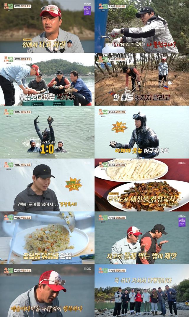 6일 방송된 MBC ‘푹 쉬면 다행이야’(약칭 ‘푹다행’)에서는 ‘안CEO’ 안정환과 일꾼 김대호, 김남일 그리고 셰프 이연복의 0.5성급 무인도 체크인 둘째 날 풍경이 그려졌다. 스튜디오에는 붐, 브라이언, 윤태진, NCT 도영이 함께해 손님들의 체크아웃까지 최선을 다하는 이들의 고군분투를 지켜봤다.