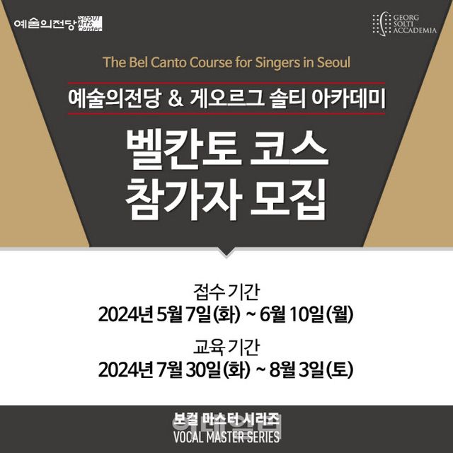 교육 기간은 오는 7월 30일부터 8월 3일까지 5일간 진행하며 참가비는 전액 무료다. 모집은 예술의전당 홈페이지에서 지원서를 내려 받아 오는 6월 10일 오후 6시까지 이메일로 신청하면 된다.