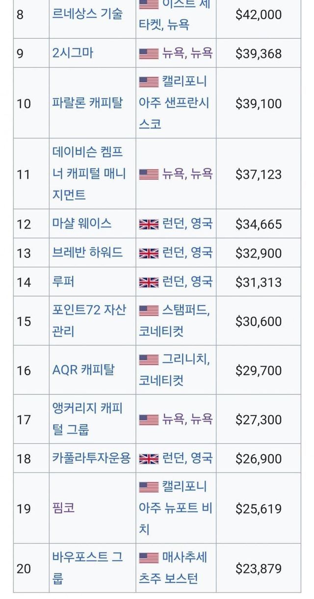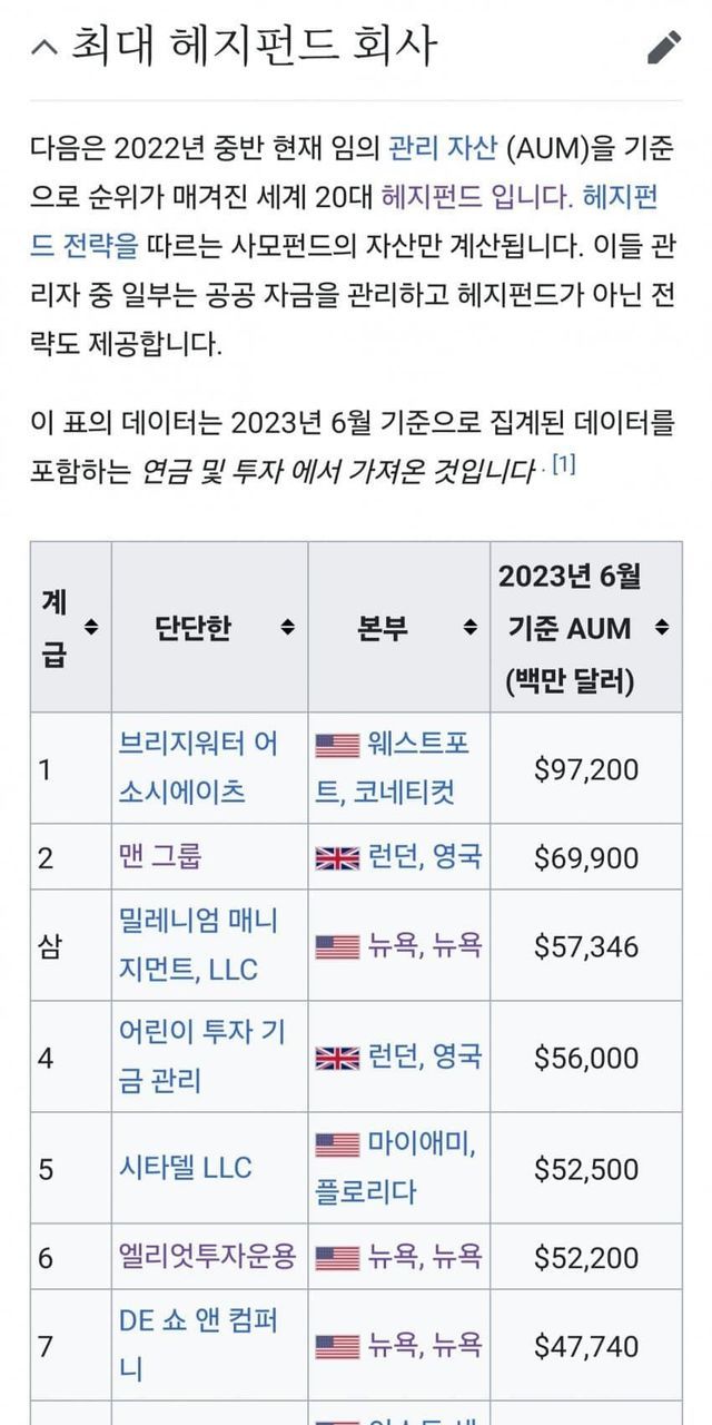 세계 헤지펀드 자본규모 순위.