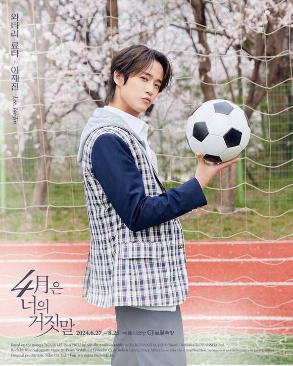 소속사 FNC엔터테인먼트는 8일 "이재진이 뮤지컬 '4월은 너의 거짓말'에서 와타리 료타 역을 맡아 열연을 펼칠 예정"이라고 밝히며 포스터를 공개해 기대감을 높였다.