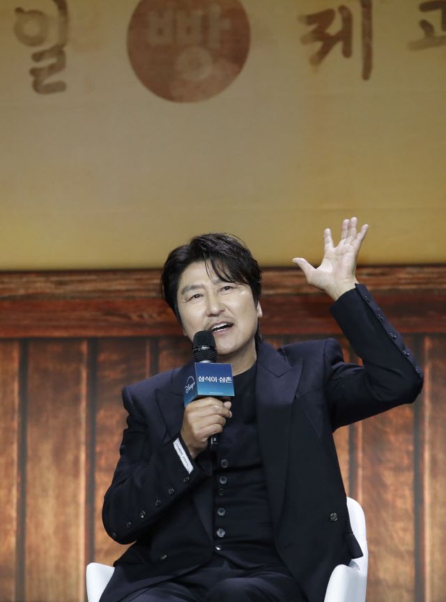 8일 오전 서울 강남구에 위치한 그랜드 인터컨티넨탈 서울 파르나스에서 진행된 디즈니+ 새 시리즈 ‘삼식이 삼촌’ 제작발표회에서 배우 송강호가 첫 드라마로 시청자를 찾게 된 이유와 소감을 전했다.