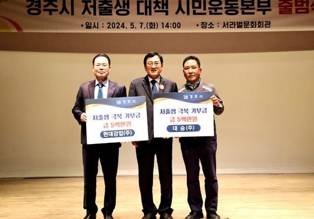 주낙영 경주시장은 “저출생 극복을 위한 국민 기부 운동에 동참해 주신 모든 분들께 감사함을 전하며, 이러한 움직임이 확산돼 저출생 극복의 전환점이 될 수 있도록 경주시가 함께 노력하겠다”고 전했다.