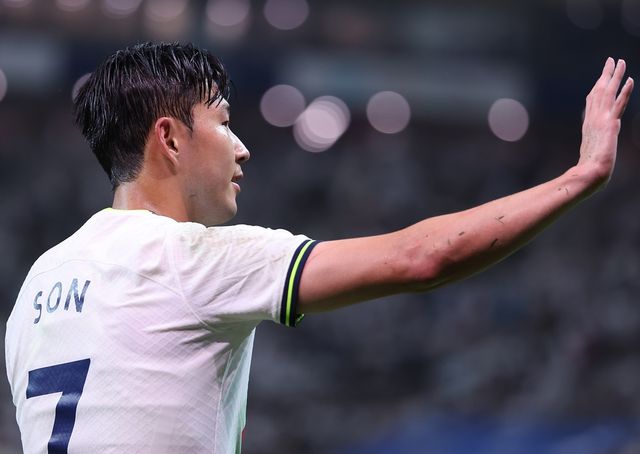 2022년 7월 13일 서울월드컵경기장에서 열린 팀 K리그와 잉글랜드 프로축구 프리미어리그 토트넘 홋스퍼의 친선경기에서 6대3으로 승리를 거둔 토트넘의 손흥민이 팬들을 향해 인사하고 있다. / 연합뉴스