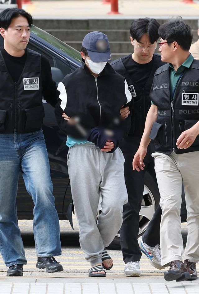 서울 강남역 인근 건물 옥상에서 자신의 여자친구를 살해한 혐의를 받는 20대 남성 A 씨가 지난 8일 오후 서울 서초구 서울중앙지법에서 열린 구속 전 피의자 심문(영장실질심사)에 출석하고 있다. A 씨는 과거 대학수학능력시험에서 만점을 받은 의대생인 것으로 알려졌다 / 뉴스1