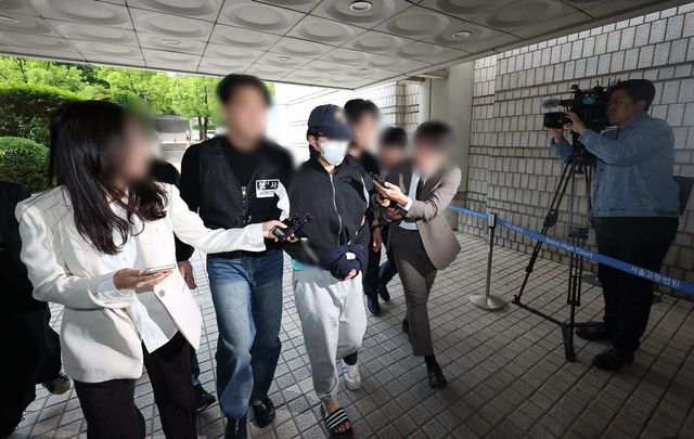 서울 강남역 인근 건물 옥상에서 자신의 여자 친구를 살해한 혐의를 받는 20대 남성 A 씨가 8일 오후 서울 서초구 서울중앙지법에서 열린 구속 전 피의자 심문(영장실질심사)에 출석하고 있다. / 뉴스1
