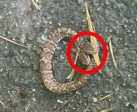 콘크리트로 포장된 등산로 한구석에서 뱀을 최초로 발견한 남성은 “뱀이 움직이지 않았다”며 “다가가서 보니 머리가 2개 붙어있었다”고 회상했다.