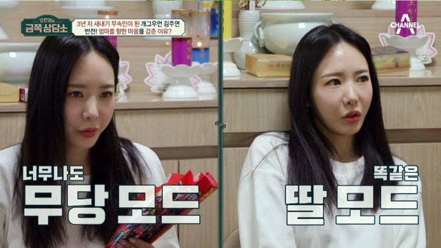 심층적인 상담을 위해 공개한 김주연, 김정희 모녀의 일상 대화 영상 속에서 엄마 김정희는 무속인 딸을 받아들이는 것에 대해 막막하다고 고백한다. 이에 김주연은 “죄지은 거 아니잖아. 그냥 나를 존중해달라”라고 딱 잘라 대답한다. 이어 “또 힘든 일이 찾아올까 봐 걱정된다”라는 엄마의 말에 김주연은 “(다시) 와! 사람이잖아!”라고 받아치며 엄마의 걱정을 완벽히 차단하는 모습을 보이기도 하는데. 이에 수제자들은 모녀의 대화가 아닌 고객의 점사를 보는 듯하다고 지적한다. MC 정형돈 또한 “엄마로 시작했다가 고객님으로 끝났다”라며 두 모녀의 대화에 당황스러움을 표한다.