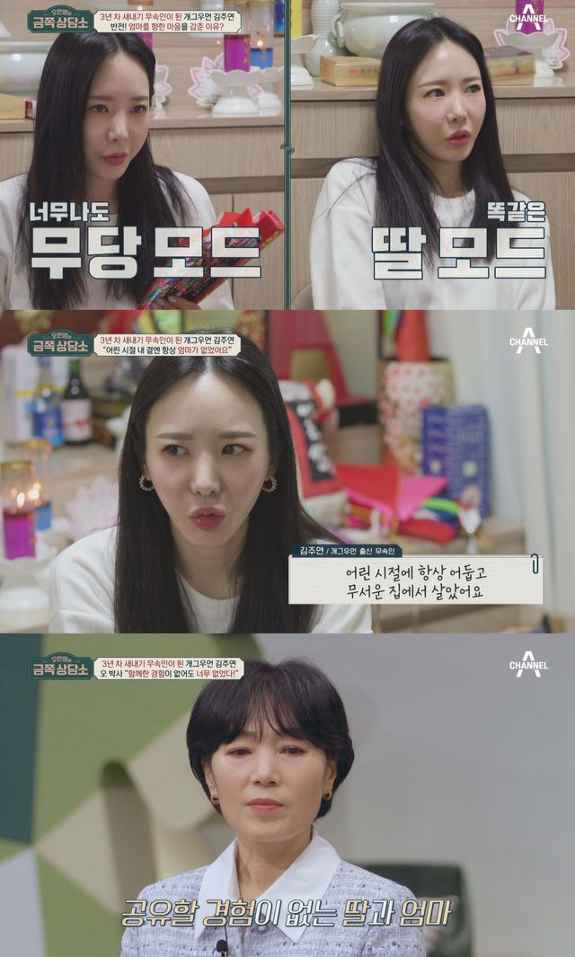 (엑스포츠뉴스 김수아 기자) 개그맨 출신 무속인 김주연이 엄마와의 갈등을 털어놓는다.
