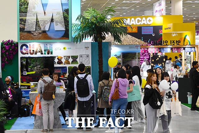 [더팩트ㅣ서예원 기자] 제39회 서울국제관광전이 9일 오전 서울 강남구 코엑스에서 열린 가운데 전시회를 찾은 관람객들이 부스를 체험하고 있다.