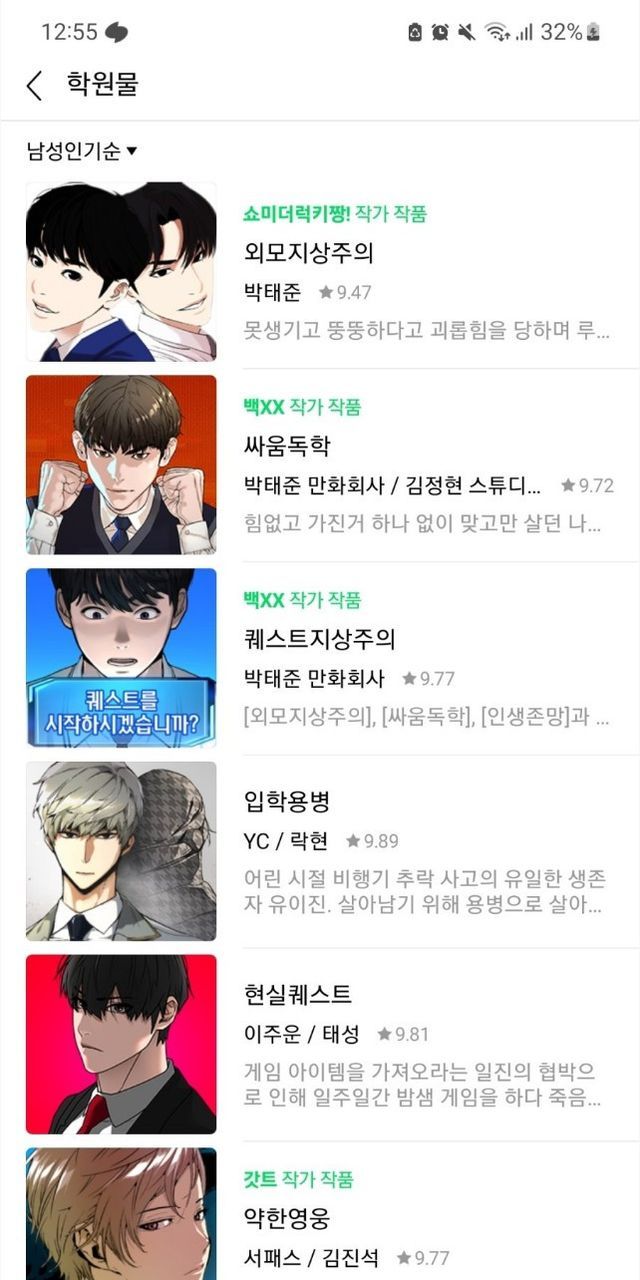 학원물인데 열에 아홉이 뻔한 일진물ㅋㅋ