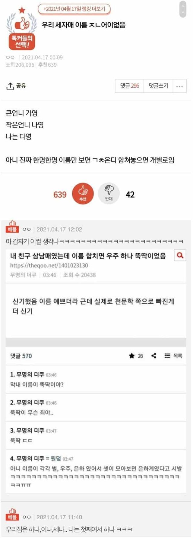우리집 세자매 이름 ㅈㄴ 어이없음