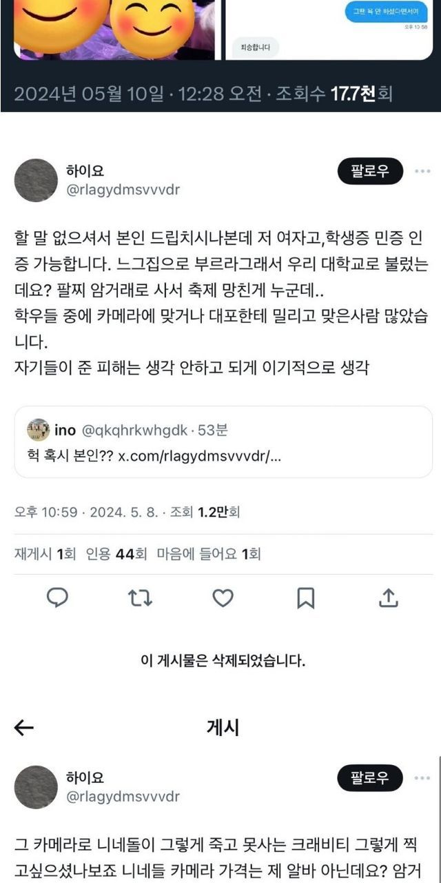 우리 욕한 인천대 남자분들 즐거우셨나요? 학생회 깡패인줄 ㅠㅠ (일반인 얼굴을 박제하며)