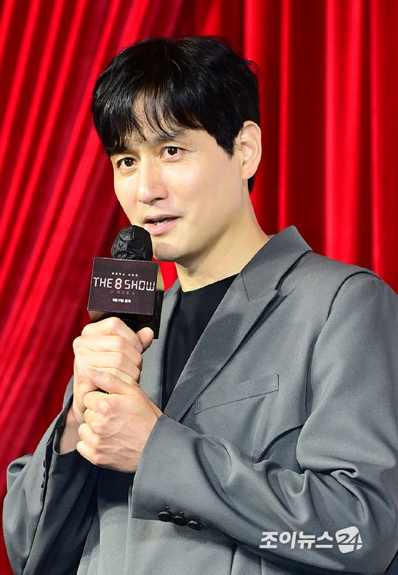 배우 박해준이 10일 오전 서울 중구 앰배서더 서울 풀만 호텔에서 열린 넷플릭스 오리지널 시리즈 '더 에이트 쇼(The 8 Show)' 제작발표회에 참석하고 있다. [사진=정소희 기자]