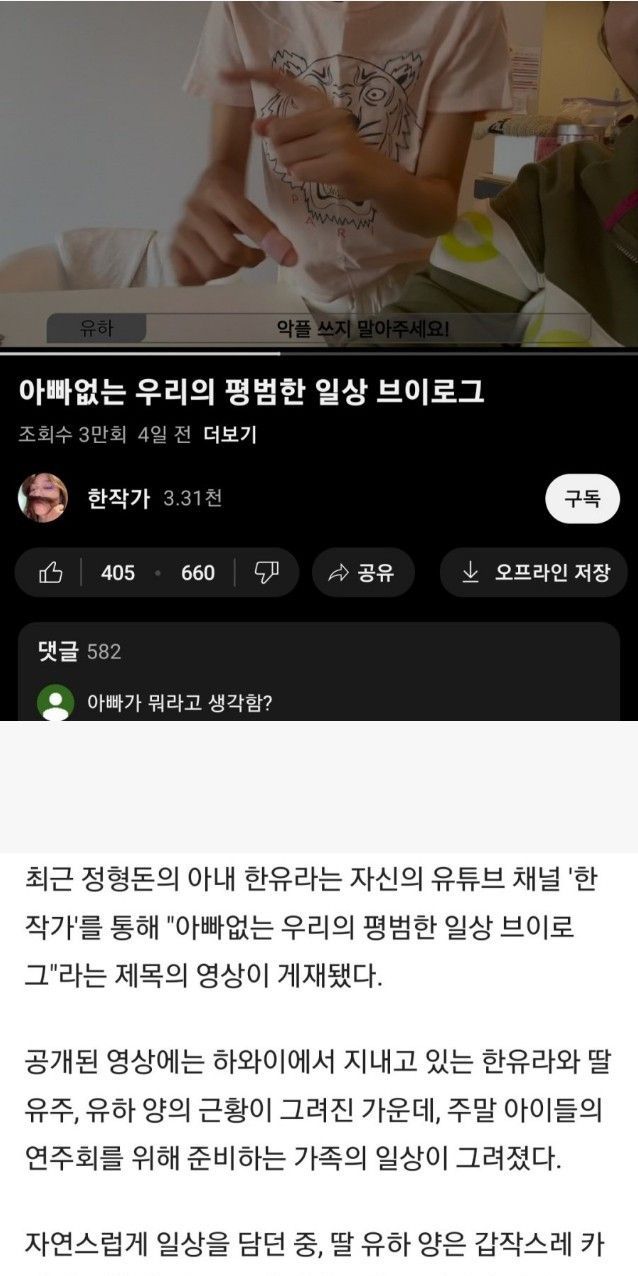 와이프 유튜브에 악플이 많아서 정형돈이 직접 댓글 남김