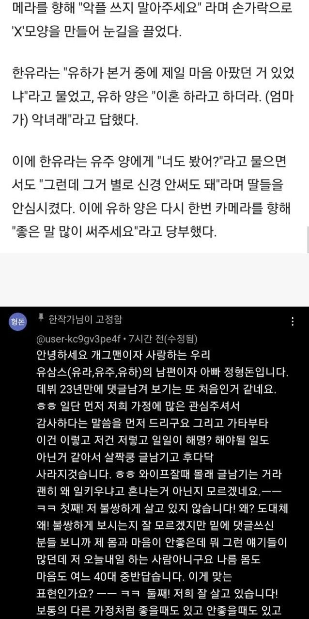 그런데 유튜브 댓글은 아직 정형돈이 불쌍하다가 더 많은 상황이네요.