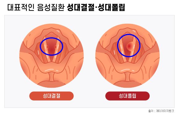 김수일 강동경희대학교병원 이비인후과 교수는 "성대폴립은 목을 자주 사용하지 않더라도 소리를 크게 지르거나 지속적인 기침 후에 성대가 자극을 받아서 발생할 수 있는 질환"이라며 "반면 성대결절은 지속적으로 목을 사용하면 발생하기 쉬운 질환이고, 여러 직업이 목소리 사용 빈도가 높기 때문에 더 많은 환자수를 보인다고 볼 수 있다"고 설명했다.