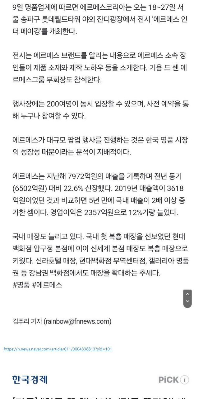 에르메스가 잠실에서 갑자기 큰 행사 여는 이유