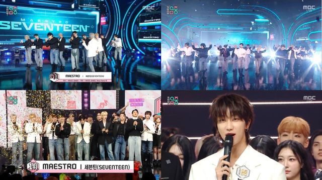 세븐틴은 지난 11일 방송된 MBC ‘쇼! 음악중심’에서 베스트 앨범 ‘17 이즈 라이트 히어’의 타이틀곡 ‘마에스트로’로 1위를 차지했다. 이로써 세븐틴은 지난 8일 MBC M ‘쇼! 챔피언’과 9일 Mnet ‘엠카운트다운’, 10일 KBS2 ‘뮤직뱅크’에 이어 음악방송 4관왕에 올랐다.